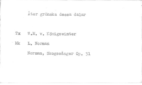 //// Åter grönska dessa dalar //// Tx W.M. v. Königswinter Mk L. Norman //// Norman, Skogssånger Op. 31