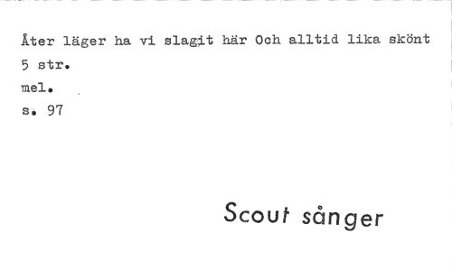 //// Åter läger ha vi slagit här Och alltid lika skönt 5 str. mel. s. 97 //// Scouf sånger