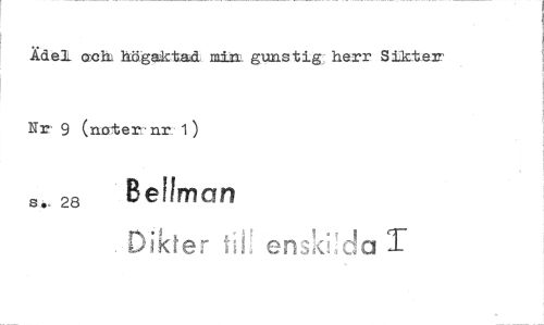 //// Ädel. cech hö.ga^kt^d min gunst ig herr Sikten //// Nr 9 (noter nr 1) //// s.28 Be!!man //// . Dikter tii[ ens!d!da T