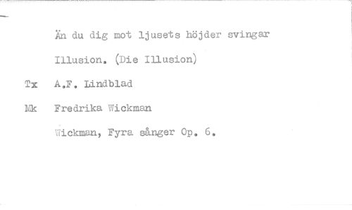 //// Än du dig mot ljusets höjder svingar Illusion. (Die Illusion) //// Tx A.y. Lindblad Mk Fredrika Wickman //// Wickman, Fyra sånger Op. 6.