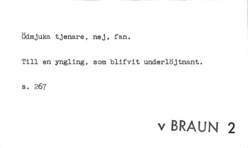 //// Ödmjuka tjenare, nej, fan. //// Till en yngling, som blifvit underlöjtnant, s. 267 //// v BRAUN 2