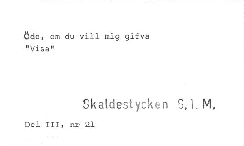 //// öde, om du vill mig gifva "Visa" //// Skatdestycken SJ. M, //// Del 111, nr 21