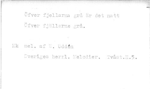 //// Ofver f jellarna grå är det natt //// Ofver fjållarne grå. //// k mel. af V,. tiddén //// Sveriges herrl. Ilelodier. Tvåst.E.5.