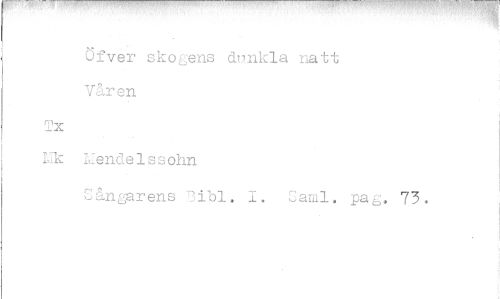 //// tpr-ry swww,wtw-'' //// Öfver skogens dunkla natt Våren //// Tx //// Uk Mende1s s ohn //// Sångarens libl. I. Caml. pag, 73.