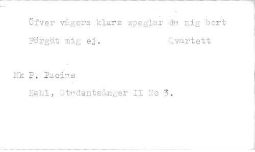 //// Ofver vågors klara speglar du mig bort //// Förgät mig ej. Qvartett //// kP. Pacius //// Hahl, Studentsånger II No 3.