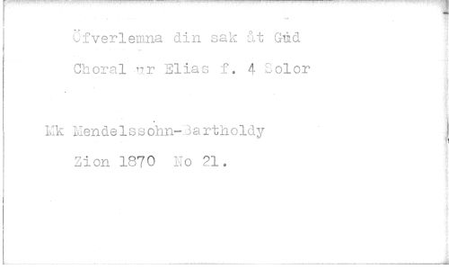 //// Cfverlemna din sak åt Gåd Choral ny Elias f. 4 Solor //// Kk Nendelssohn-3artholdy Zion 1870 No 21.