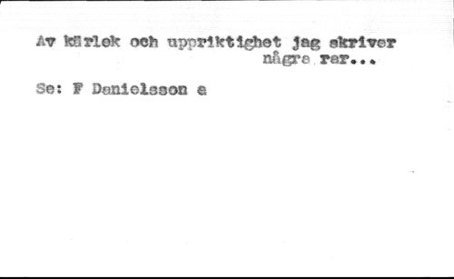 Av kOrlek ock uppriktighet Jag akriver //// nagre rar,.* //// Se: F Danielsson a