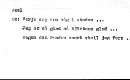 * • • //// Axel //// Ses Tsrje dag mm såg 1 steden //// Jeg är så glad aå hjärtans glad ... Dagen den rrnd^e snart skall Jag fara .