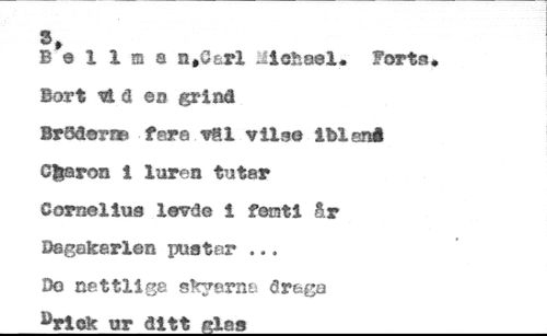 B*e 1 1 m a n,G&rl äie&ael* Forts* Bort Dl d ea grind Bröderna fera vKl v ils© iblsnft Cfcaron i luren totar Comelius levde i fen t i år Dagakarlen pustar ... //// Dd nattlige skyarna draga //// arlck ur ditt gles_________________