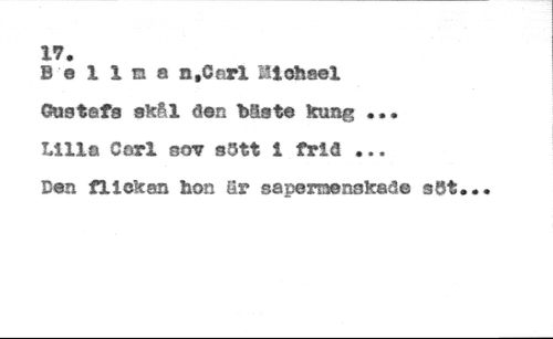 17. //// Be lin a n.Cnrl Hlohael Gustafs skål den Mate kung ... //// Lilla Csrl sov sött 1 frid ... //// Den flickan hon ur sagerraenskede söt.