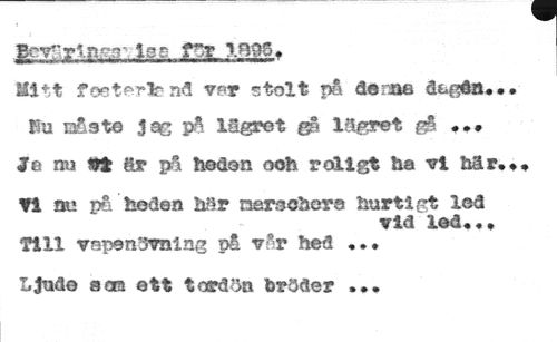 å£g:xX£;-s:, iss.. £3l?-22£» //// Mitt f nå v?*r stolt på de me dt.{^a. • //// Itu måste jag på lågret gå inpyet gå //// Jb mi fi ftp jä hedan ooh roligt ha vi här. //// ?i au på heden h§r marschera hurtig led //// vid led«,* //// Till vapenövning på vår hed «. • //// Linde som ett tord3a bröder //// • * •