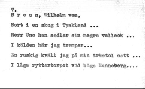 a -a //// rann, t ilhalH! von, //// Bort i ©n skog 1 Tyskland ... //// Herr Uno Han sedlar sin magra vallaok «. //// I kSlden hSr jag trampar... //// SÄ ruskig kväll jag på sin trlstol ©ett X lågs ryttartorpot vid hSg© Imimefcerg..