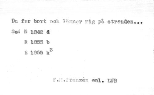 Du fer bort och l^sairr v*ig pi stransen* S»S S 1842 <3 //// H 1865 b & 1955 kP' //// f* « ranmn «al* tJUTB