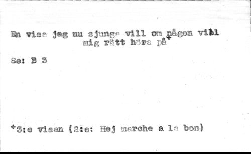 In vis* jsg nu sjunga vill on nâgon vifel mig ratt h'pt pfi //// Se: B 3 //// q visan (?»;«: Hej marche a la bon)