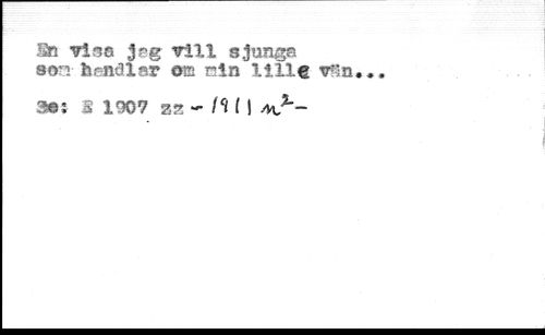 Sto viss jrg vill sjunga son- It end lar om min lille v5* //// 3es 1 1907 sss - h i! AV1*-