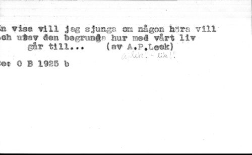 ¡n visa vill jag sjunga om någon fen ra vill ich utav åen begrün#?' hur meå vårt liv går till... (av A.P.leek) //// Xù 1 - Uh. 11 //// et 0 B 1985 b