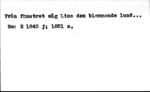 Från fönstret såg Lina den blommande lund. //// Ser X 1843 J; 1851 n,