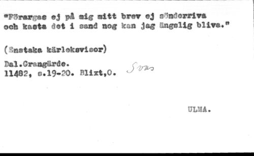 •F^wur-a# ©j p.4 aig aitt feror ©4 stoftnniv» ocb feast* d®t i san3 nog feaa jag ingelig blif»*'' //// ( natafea fe&rloksvi&or) //// Dal. Grangfird e. //// 11482, ©•19*20* //// . / ^ //// ULMA