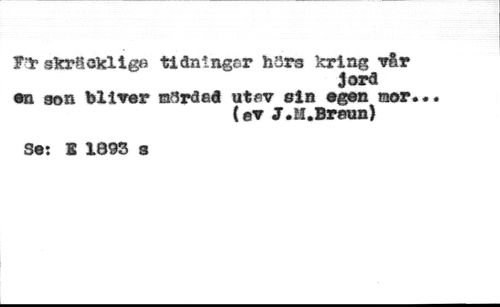T t skräckliga tidningar hars kring vår //// jord //// en 30n bliver märdad utav eln egen aor. //// (ev J.M.Braun) //// Se: 2 1893 s