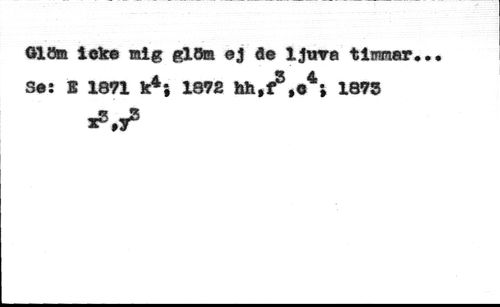 Glöm ieke mig glöm ej de ljuva timmar. Se: B 1871 k4j 1872 hh,f5,e4j 1875
