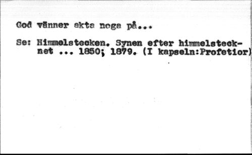 God vSnner ekts nega p&... //// Ses Himmelstecken. Synen efter himmelsteck-net ... 1850; 1879. (I kapseln:Profetior) //// . i