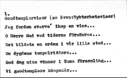 Goodteiapl arris or {ae fifen^Tykterhetselsor) fordom srerra* ihop en visa... //// 0 Herre Gud vad tiderna försämras••• //// Det bildats en orden i rår lilla stad... Uu dygdens tempolriddare... //// God dag mina ränner i Tuna församling... Vi goodtempl&xs kämpa&är.. •