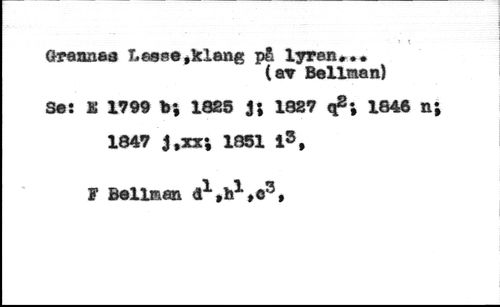 Grannaa Less©,klang pê lyren*.* //// (av Bellman) //// Se: k 1799 b*, 1825 U 1827 tp\ 1846 n; 1847 J.xxi 1851 Is, //// F Bellman