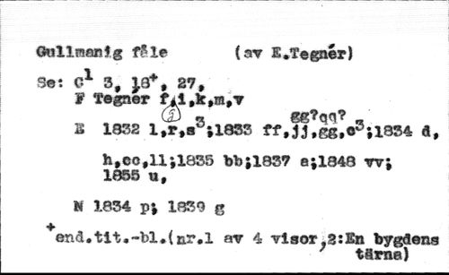 (sr E.Tegnér) //// Gnllrcanig f£le //// Se: G1 3, 13*, 27, //// f Tegner fil,!r,ra,T //// CD « gg?qq? „ //// B 1932 l,r,s^;1833 ff,jJ»gg,«''slB34 d, //// h,co,ll;1835 bb;183? e;1848 rr\ //// 1855 vt, //// h 1834 p*, 1830 g //// +end.tlt.-bl*(nr.l ar 4 visor,2:£n bygdens //// 7 tärna)