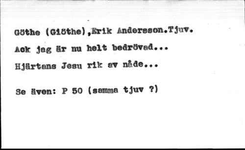 Göthe (Glöthe)»firik Andersson.Tjuv. Aok jag Sr rm helt bedrövsd.•. Hjärtana Jean rik ar n§åe... //// Se Sven: P 50 (samma tjuv ?}