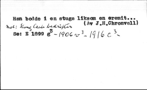 Han bodde 1 en stuga liksonen eremit... ( //// : fc- //// (At J.H.CHronrell) //// CajlJa //// se: S 1899 i - tfûC or 3- /f ¡Í