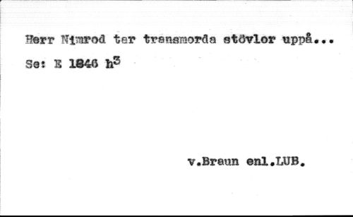 Herr Nimrod ter transborda stövlor uppå. Sei S 1846 Ir5 //// v.Braun enl.LUB