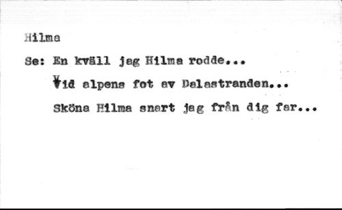 iiilma //// Set En kv§ll jag Hilma rodde.«. //// ¥id alpens fot «w ßelaatranden..« //// Sköna Hilma anart Jag från dig fer«