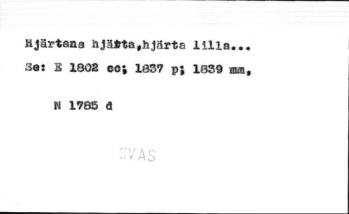 Hjärtans hjätta,hjärta lilla*«. 3a: E 1802 ecj 1837 p; 1839 ana, //// N 1785 d //// A