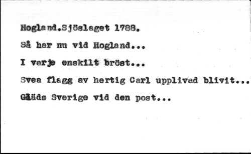 Högland* Sjöslaget 1788* //// Så her nu vid Högland*.. //// 1 varje enskilt bröst*** //// Svea flagg av hertig Carl upplivad blivit öiiide Sverige vid den post...