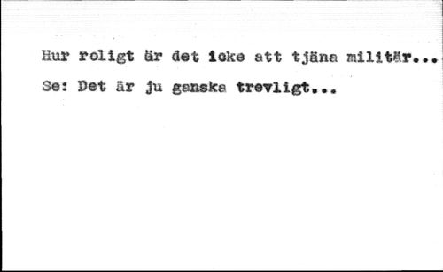 Hur roligt iår det icke att tjäna militär. Se: Det är ju ganske trevligt...