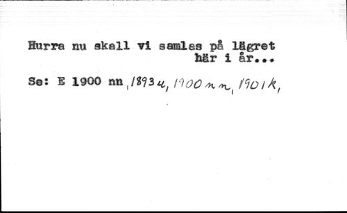Hurra nu akall vi asíales på lägret //// Här i år... //// Se: E 1900 nn {ñüiA,