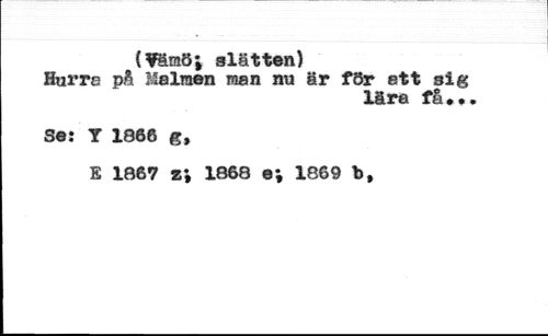 (¥ämöj slätten) //// Hurre på Melraen man nu är för ett sig //// lära få... //// Se: T 1866 g, //// E 1867 z\ 1868 e; 1869 P,
