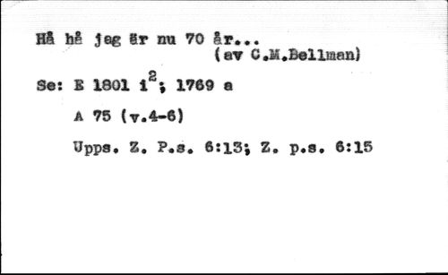 Hi hi Jeg Sr nu 70 ir.*. //// (8T C,M. Bellman) //// Set £ 1801 i2; 1769 a //// A 75 (v.4-6) //// Uppa* Z. P*s. 6:13; Z, p«s. 6:15