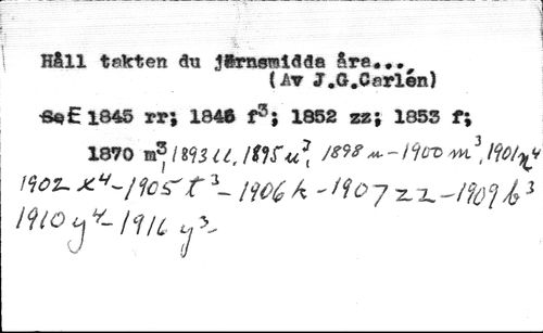 Håll takten åti jtsmsiBlåda åra... //// (At J.G.Carlén) //// «*E 1845 rr; 1846 f3; 1852 zz; 1853 f; //// 1870 ra3 / 895 i ¿t /Sjiu * /*** ~ '' / 9(n> m ] Ify/^ //// um- x^/fos'r3- m 7 T.u-m //// i<tiö i, /f/¿ >_