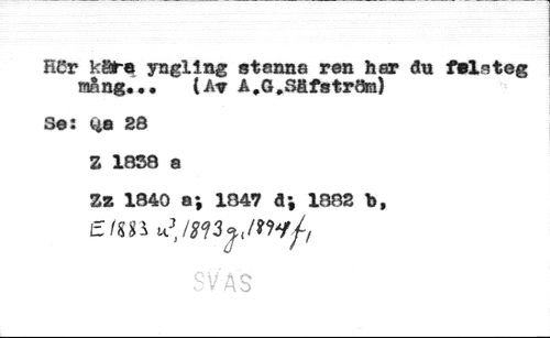 Her kSre yngling s t sans ren her du felsteg raång*.. tAr A.G.Säfatrös) //// Se: (¿a 28 //// Z 1838 a //// Zz 1840 1847 d*t 1882 b, //// Eim