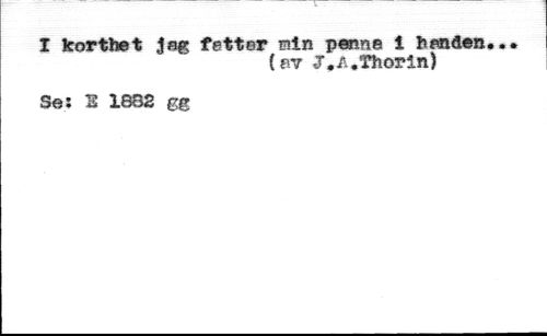 I korthet jag fattar min penne i handen. //// (av jr.A.Thorln) //// Se: B 1882 gg