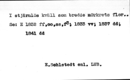 I stjäriilüa kväll con brödd© mörkrets flor.. Ses I 1822 ff#oo*ss,f®i 1832 rr; 1837 dd; 1841 dd //// E.Sehlstedt enl. LUB.