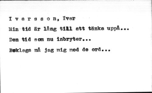 I vara s on, Ivar //// Min tid är lång tiål att tänka uppå. //// Dan tid sora nu inbryter,.* //// Beklaga raå Jag mig med de ord...