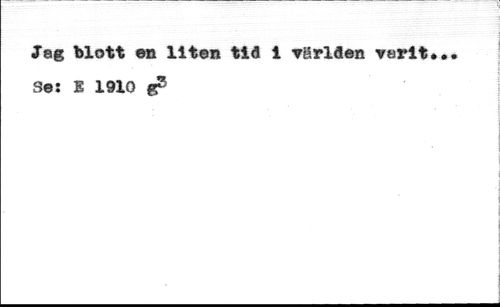 Jag blott en liten tid i v&rlden verit Se: E 1910 #