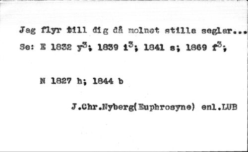 Jag flyr till aï g öå nolnot. stille seglar..» Se: S 1832 yS. l839 t3, 1041 s. 1869 *5. //// S 1827 h', 1844 b //// J.Chr.fîÿbergtSupbrosyne) enl.LUB