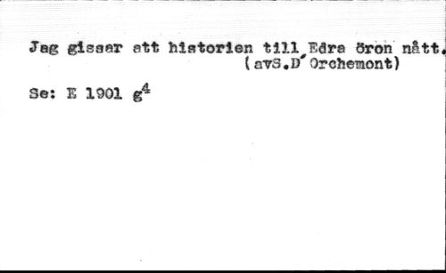 Jag gisaar att historien tillvara öron nått, //// (avs.ö'Orchemont) //// Se: K 1901 g4