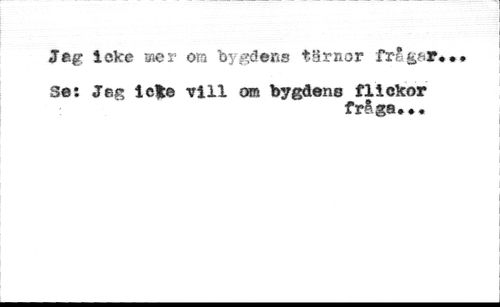 Jeg icke mer ora bygdens tärnor frågsr. //// Se i JTeg i efe viil om bygdens flickor //// fråga»»«