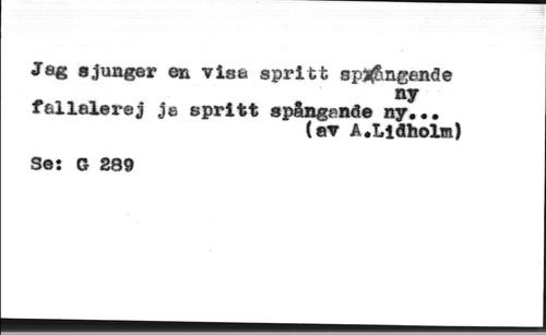 Jeg sjunger en vise spritt spj&ngande //// ny //// fallelerej je spritt spångende ny.«, //// (av A.Lldholm) //// Se: G 289