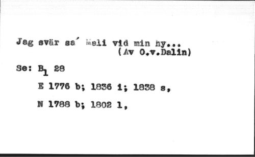 Jag avär ss' »¿ali vid min ny..« //// {Av O.v.Dalin) //// Se: 28 //// E 1776 b; 1056 1; 1858 s, //// N 1788 b| 1802 1,