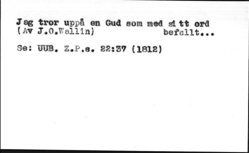 J sg tror appå en Gud som med si tt ord //// (ay J.O.Fallin) befallt... //// Se: UÜB. Z.P.s. 82íS7 (1812)